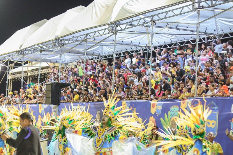 O segundo dia de programação da Passarela do Samba Chico Coimbra (Anel Viário), neste sábado (18), foi marcado por um desfile de fantasias ricamente elaboradas e brincantes apaixonados, cantando e dançando as letras dos sambas-tema dos Blocos Tradicionais que integram o Grupo A.