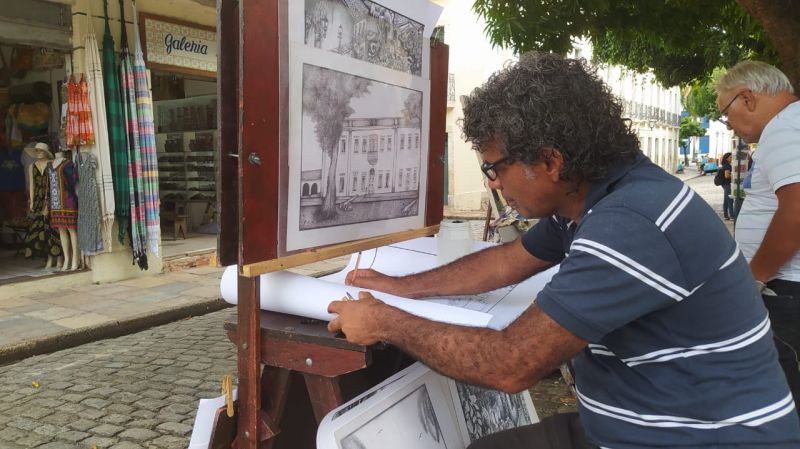 Claudionor Pereira explica que sua maior inspiração não teria como ser outra, a não ser a própria cidade. “Eu pinto debaixo da mangueira há oito anos, conheci todo mundo aqui nesse local. Eu geralmente pinto casarões, o bumba meu boi, e paisagens de São Luís. Os turistas e clientes pedem e gostam muito”, afirmou.
