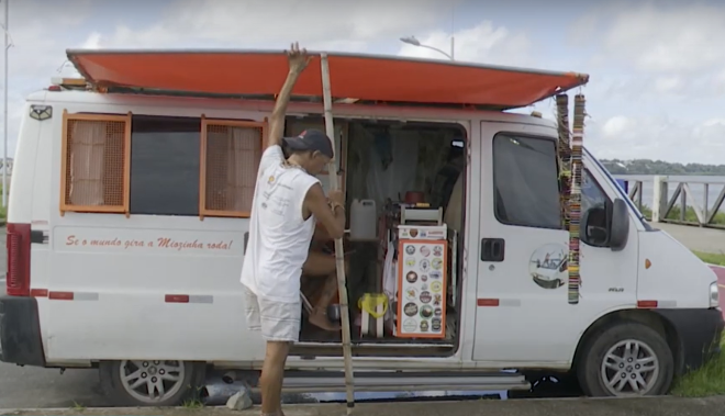 A van, que foi batizada como “Van Miozinha”, possui uma caixa d'água e garante água por vários dias ao casal.