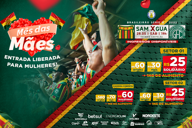 Neste sábado (28), o Sampaio Corrêa enfrenta o Guarani, no Estádio Castelão, em São Luís. A partida válida pela 9ª rodada do Campeonato Brasileiro da Série B, tem início às 19h.