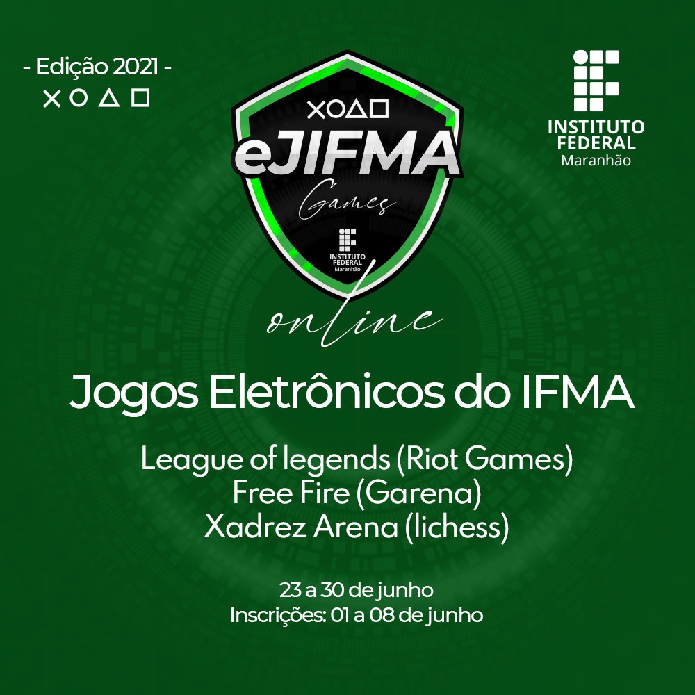 O Instituto Federal do Maranhão (IFMA) abriu inscrições para monitoria do e-JIFMA Games, que será realizado de 23 a 30 de junho, de forma on-line. Estão sendo ofertadas 19 vagas para monitores e somente poderão se inscrever os estudantes matriculados em cursos técnicos. Para se candidatar, é preciso preencher o formulário eletrônico de inscrição até o dia 10 de junho.