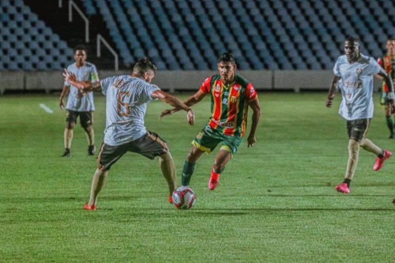 Jajá fez jogada pelo meio e sofreu falta violenta nas proximidades da grande área, e a arbitragem deu apenas cartão amarelo para o zagueiro do Pinheiro. Na sequência, o árbitro expulsou Rodrigo Andrade após disputa de bola pelo alto, em um choque casual.
