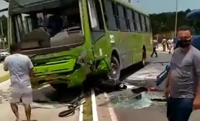 O condutor do caminhão ficou preso nas ferragens e foi retirado por populares. Uma equipe da Secretaria Municipal de Trânsito e Transportes (SMTT) está no local para orientar o trânsito.