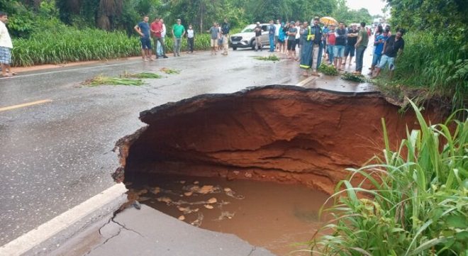 A decisão de fechamento da rodovia decorreu do aumento das chuvas, que vem caindo na região e que desgastou a base do pavimento colocando em risco a vida das pessoas que trafegam pelo local.