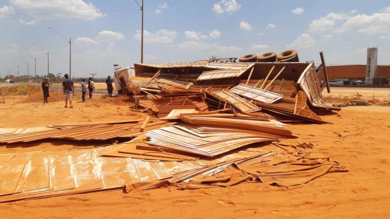 Uma carreta carregada com chapas de madeira compensada tombou próximo à entrada da cidade de Imperatriz, no Km 250 da BR 010, na rotatória que dá acesso ao Estado do Tocantins.O acidente aconteceu por volta das 12h30 desta segunda-feira (14). O óleo do compartimento do motor derramou e deixou a pavimentação asfáltica escorregadia, sendo necessária a interdição total da pista para evitar outros acidentes.