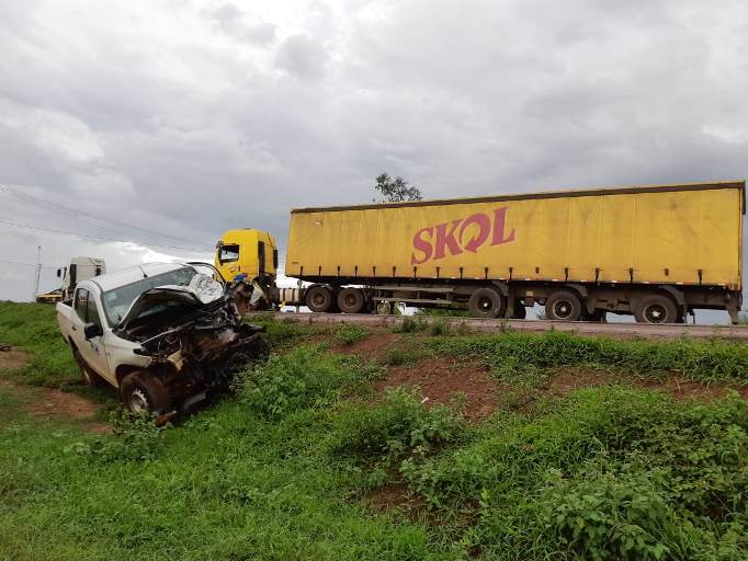 A carreta ficou sobre a pista e a caminhonete desceu o barranco. Um ocupante do veículo menor teve ferimentos leves. Ninguém morreu ou se feriu gravemente.