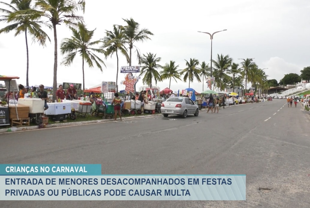 Crianças e adolescentes também aproveitam as festas no período do Carnaval. Mas os menores que forem flagrados sem acompanhamento dos pais ou responsáveis pode resultar em multa. Os proprietários de bares, festas ou blocos carnavalescos que forem flagrados oferecendo álcool para esse público podem ser penalizados. Bebidas alcoólicas ou tabaco oferecidas para menores de 18 anos é crime.