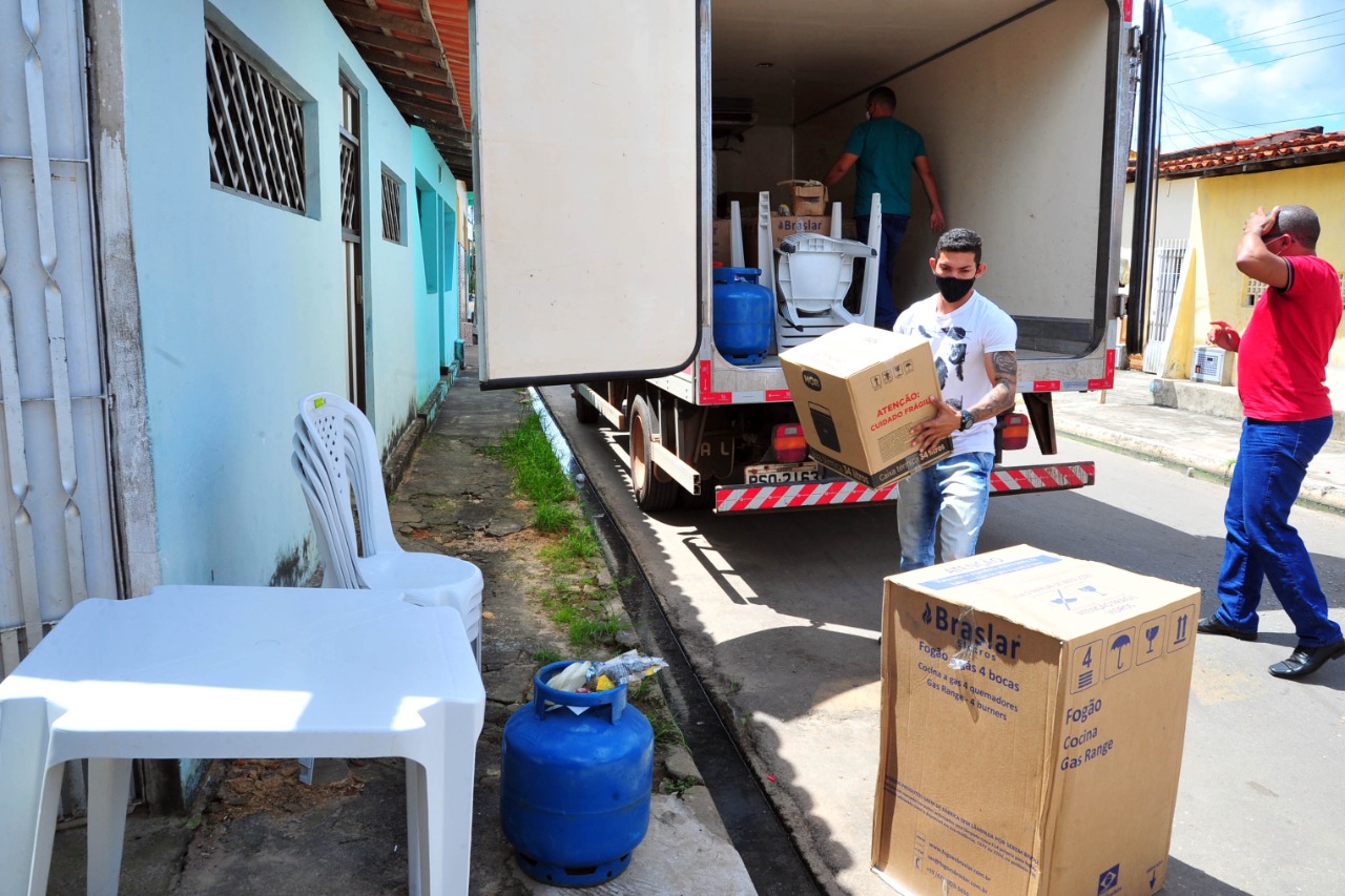 Na segunda-feira (26), em São José de Ribamar, além do sr. Valdemar Pinheiro Ferreira, mais quatro ex-moradores de rua, assistidos pelos Centros POPs e que, hoje, recebem o aluguel social ou conseguiram uma casa através de programa social, receberam do Governo do Estado, por meio da Secretaria de Estado do Desenvolvimento Social (Sedes), um Kit Mobília (fogão a gás 4 bocas, cama box solteiro, ventilador de mesa, mesa plástica quadrada branca, 4 cadeiras plásticas sem braço, caixa térmica de 30 litros e botijão de gás de 13 kg).