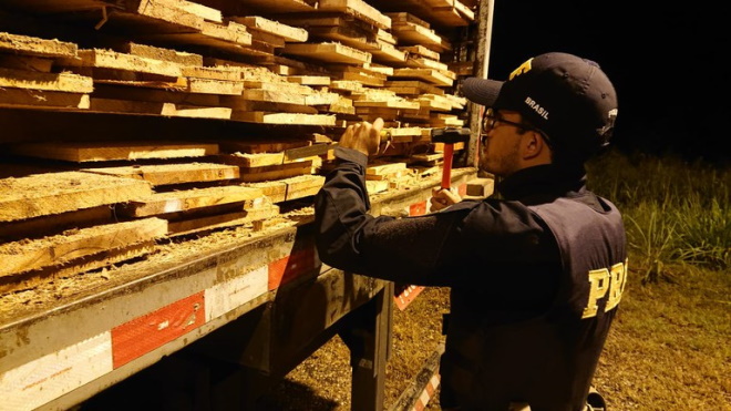O condutor foi enquadrado, a princípio, pelo crime de transportar madeira sem licença válida (art. 46, parágrafo único, da Lei dos Crimes Ambientais). O envolvido assinou um termo circunstanciado de ocorrência (TCO) e foi liberado em seguida, comprometendo-se a comparecer em juízo quando convocado.