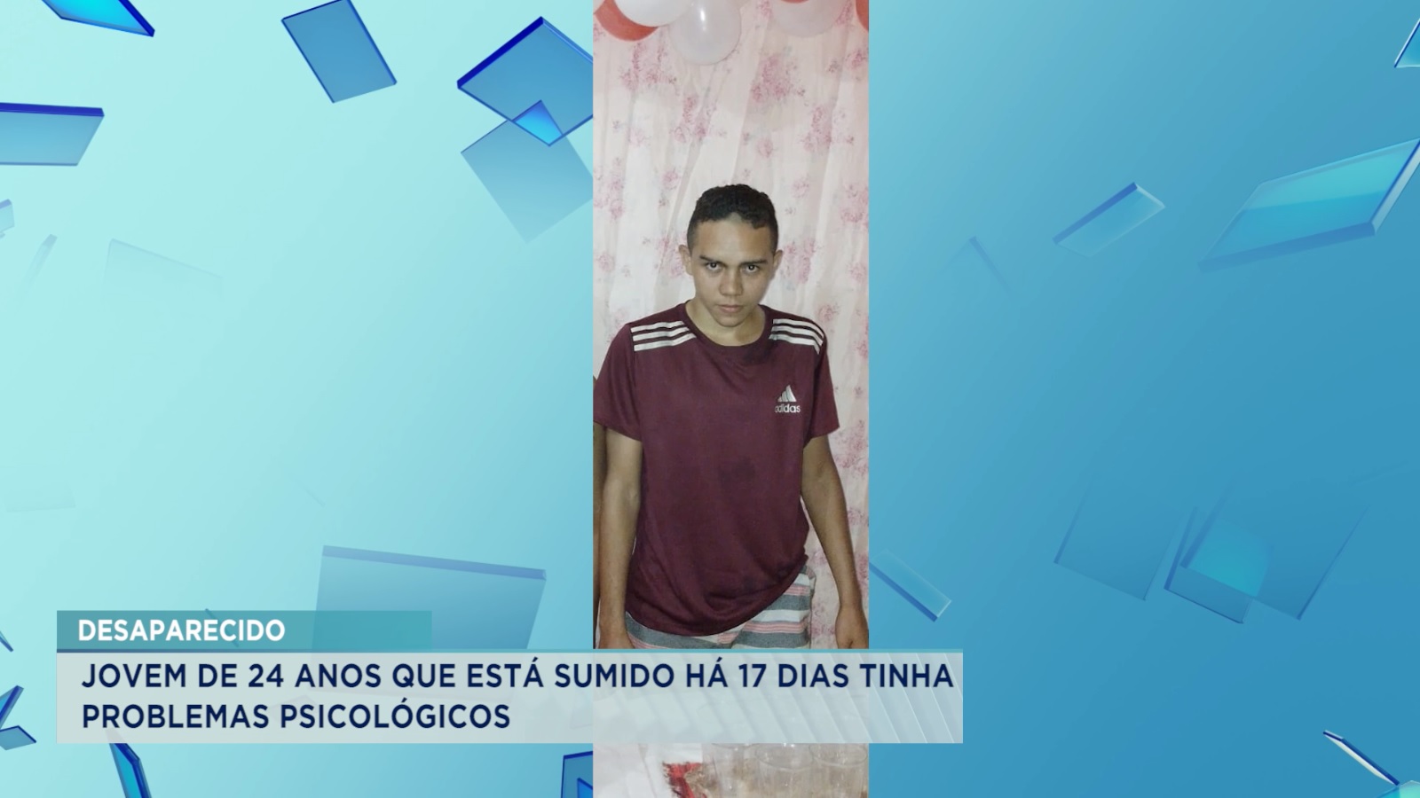 Francisco Vieira Silva de 24 anos esta desaparecido há 17 dias. O jovem morava com a família na Vila Maranhão, zona rural de São Luís. No dia do desaparecimento, Junior saiu em uma tarde do dia 4 de setembro e até agora não retornou. De acordo com os familiares, ele sofre de problemas psicológicos e estava fazendo uso de medicamentos.