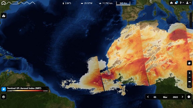 Uma nuvem de areia vinda do deserto do Saara se aproxima da costa brasileira, especialmente no nordeste, com possibilidade de chegada ao litoral de São Luís. Os registros dos sensores de detecção são feitos pelo Serviço de Monitoramento Atmosférico Copernicus da União Europeia.