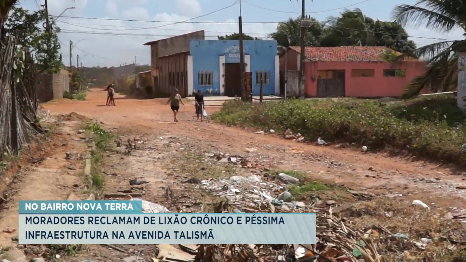 Moradores estão reclamando da infraestrutura na Avenida Talismã, no bairro Nova Terra, em São José de Ribamar. No local, além da falta de infraestrutura, há descarte irregular de lixo, o que contribui para o mau cheiro na avenida.
