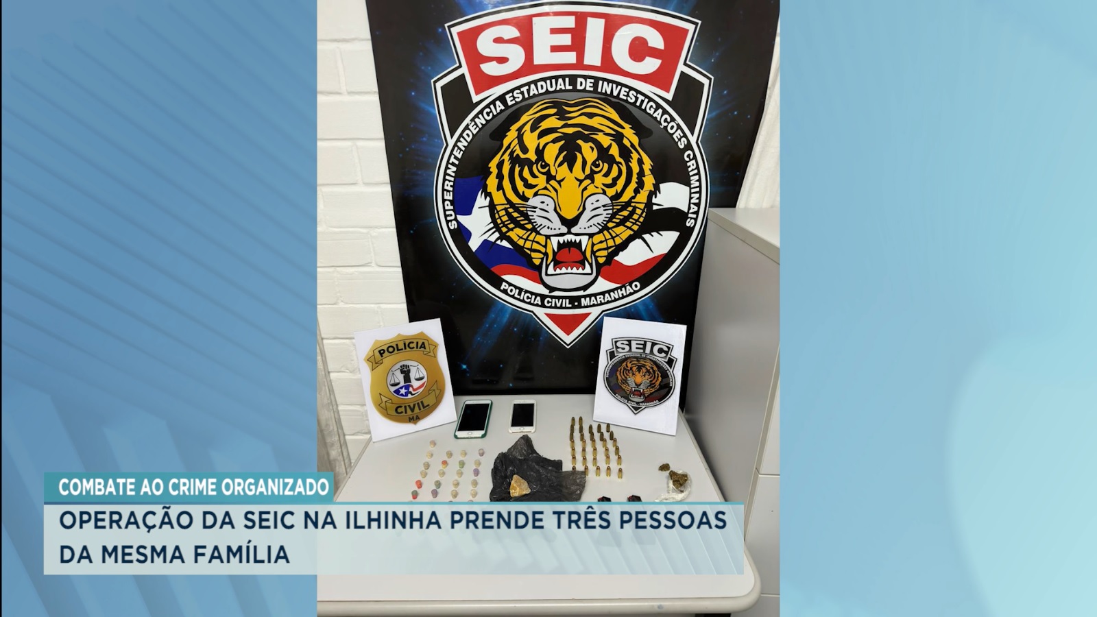 Ao todo, os policiais da SEIC cumpriram oito mandados de busca e apreensão para desarticular um suposto grupo criminoso instalado no bairro da Ilhinha, em São Luís. Entre o material apreendido, dois carregadores de pistola, trinta e duas munições calibre ponto trezentos e oitenta, além de porções de crack e outras provas que devem ajudar na investigação.