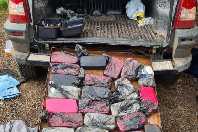 Informações obtidas pelos policiais apontaram que um veículo suspeito trafegava da região da fronteira do país até a capital goiana. As equipes do serviço de inteligência da Força Tarefa iniciaram os levantamentos e monitoramento dos possíveis alvos, fato que culminou com a abordagem de veículo suspeito, uma picape FIAT/Strada, na rodovia GO 080, entre Goiânia/GO e Nerópolis/GO.