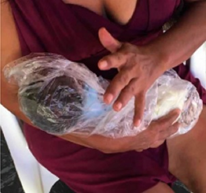 Fotos tiradas no local mostram que a criança estava dentro de uma sacola de feira.