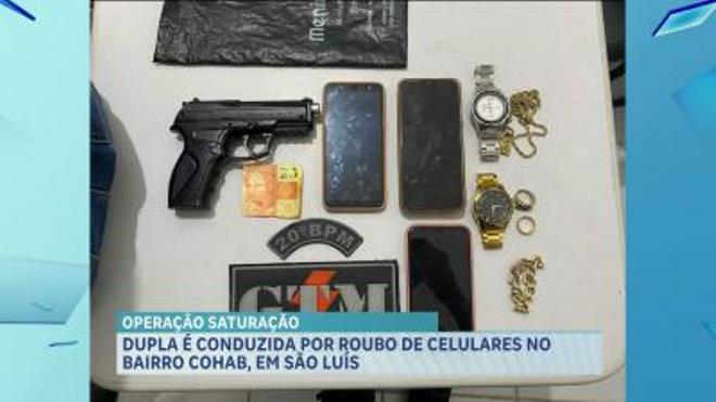 Duas pessoas foram conduzidas por suspeita de envolvimento em roubo de celular no Terminal de Integração do bairro Cohab, em São Luís. Segundo a polícia, um adolescente de 17 anos, e um simulacro de arma de fogo foram apreendidos. Três aparelhos foram recuperados.