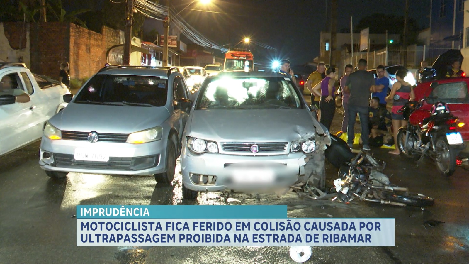Um motociclista ficou ferido após uma colisão na noite dessa segunda-feira (29), na Estrada de Ribamar. Segundo testemunhas, a colisão foi causada por um veículo que tentava fazer uma ultrapassagem irregular.