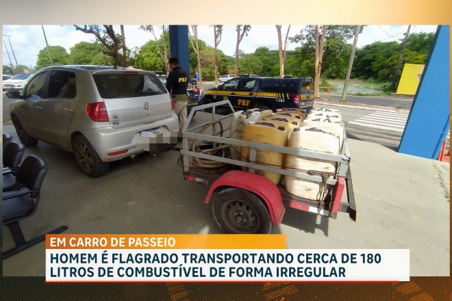 Durante fiscalização da Polícia Rodoviária Federal (PRF) na BR-135, em São Luís, um motorista foi flagrado transportando 180 litros de combustível de forma irregular.