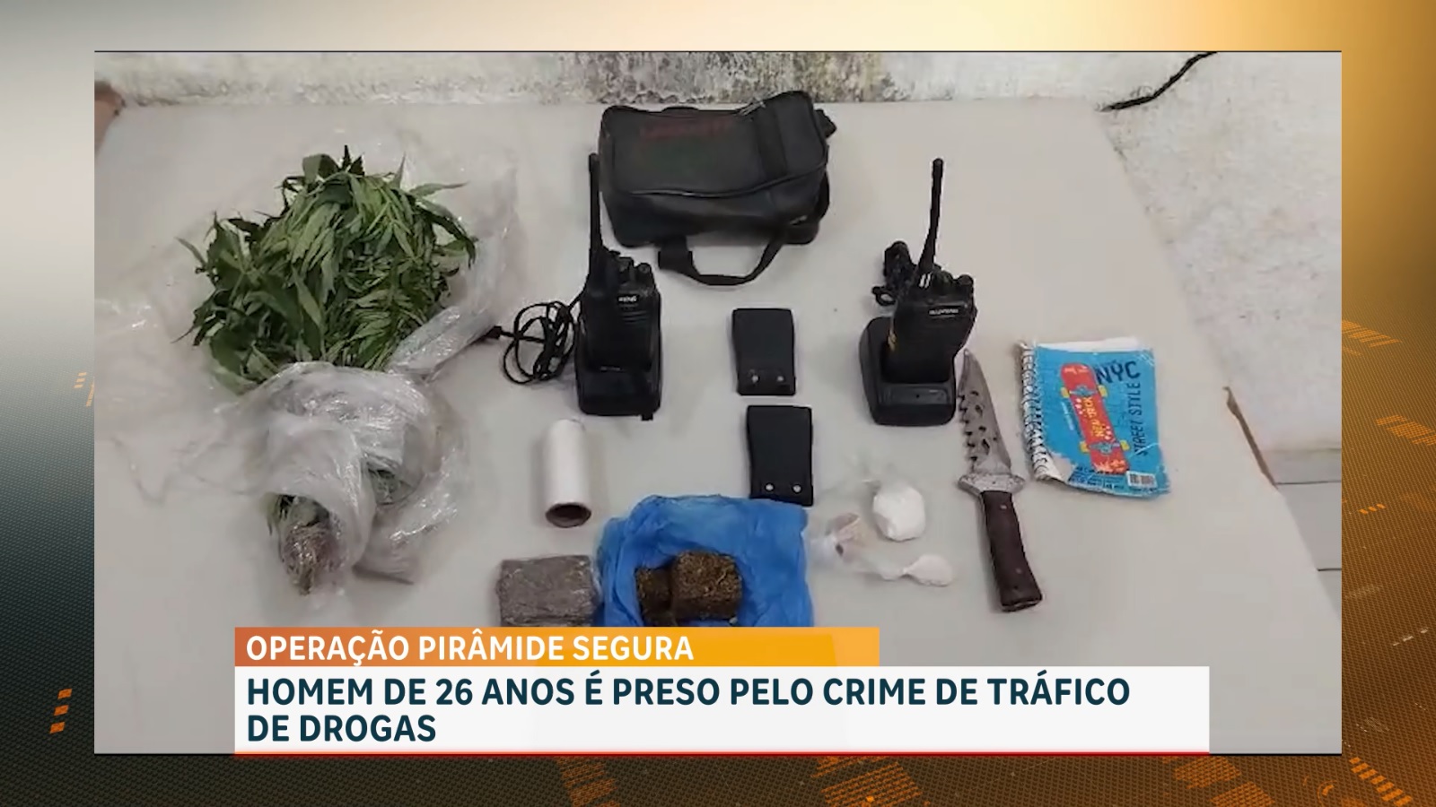 Policiais do 40º Batalhão de Polícia Militar (40º BPM) conduziram um homem suspeito de traficar drogas. O homem de 26 anos foi preso em flagrante durante a operação Pirâmide Segura, de combate ao crime na região da Raposa.