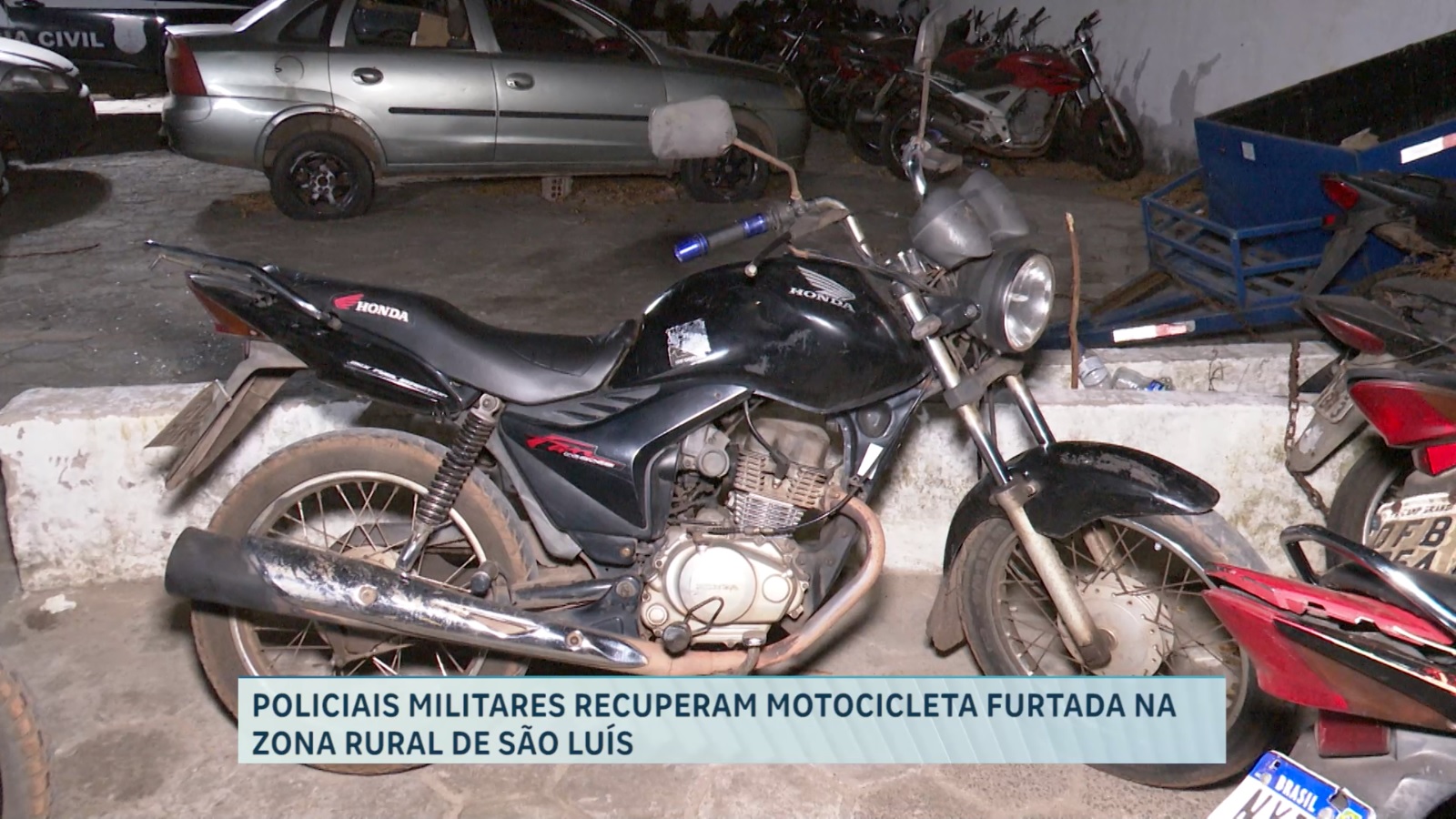 Policiais militares recuperaram uma motocicleta que havia sido furtada. Os criminosos pegaram o veículo enquanto estava estacionado em um posto de gasolina no bairro Morada do Sol. Horas depois do crime a polícia conseguiu localizar a moto por meio da placa na Zona Rural de São Luís.