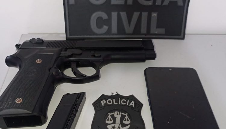 Um dos suspeitos foi preso em sua residência no bairro Vila Embratel. As investigações apontam seu envolvimento em um roubo a residência ocorrido no dia 09 de agosto desse ano, no mesmo bairro. Na ocasião, o suspeito juntamente com mais 03 comparsas, todos armados, subtraíram vários bens do local, e ainda obrigaram as vítimas a realizarem transferências de valores via Pix. Com o preso os policiais apreenderam um simulacro de arma de fogo.