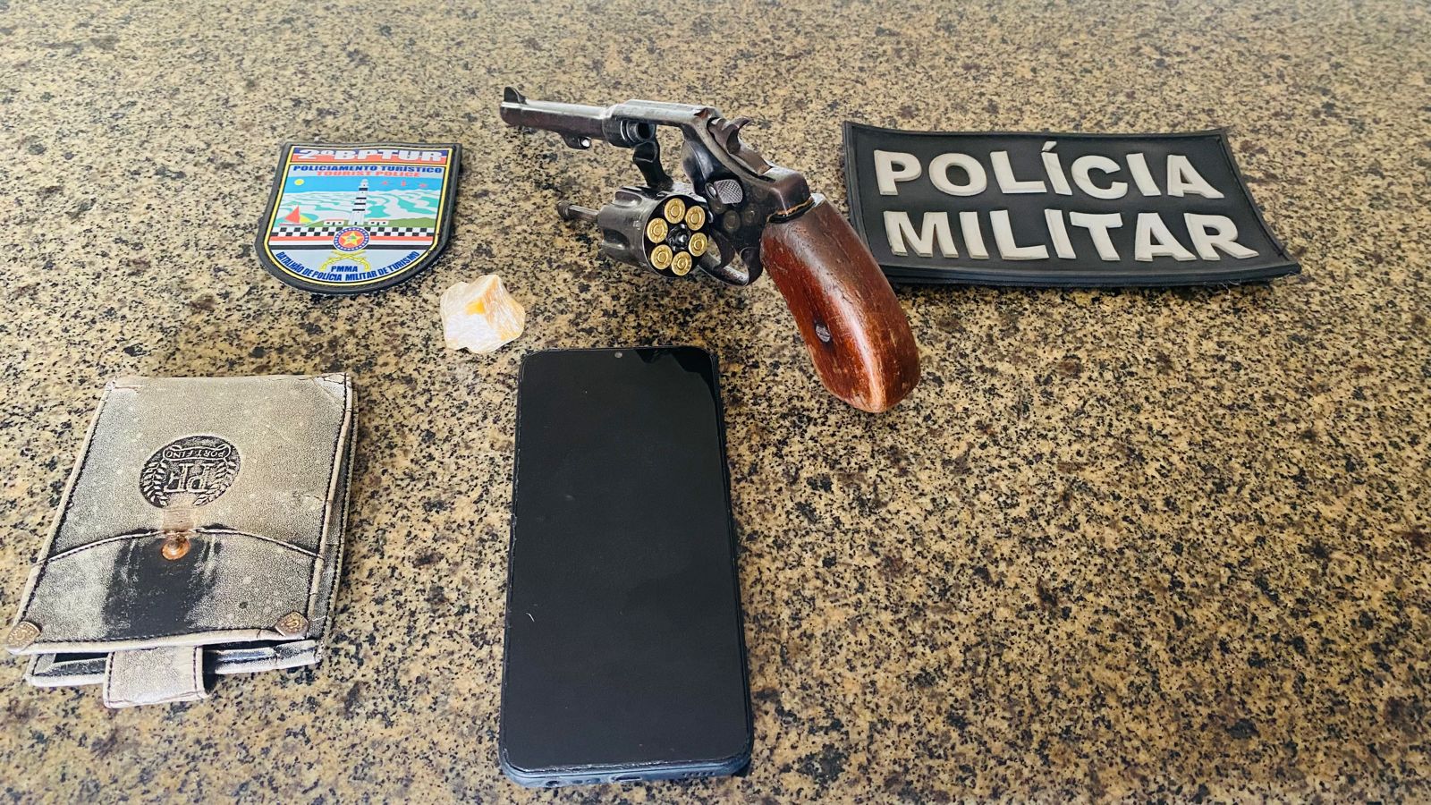 Após a emissão de uma ordem legal de parada, os policiais perceberam que a mulher tentou se desfazer de uma porção de uma substância semelhante a crack. A situação tornou-se mais complexa quando, durante a revista, os agentes encontraram uma arma de fogo calibre 32, municiada com seis cartuchos, além de duas pedras de entorpecente.