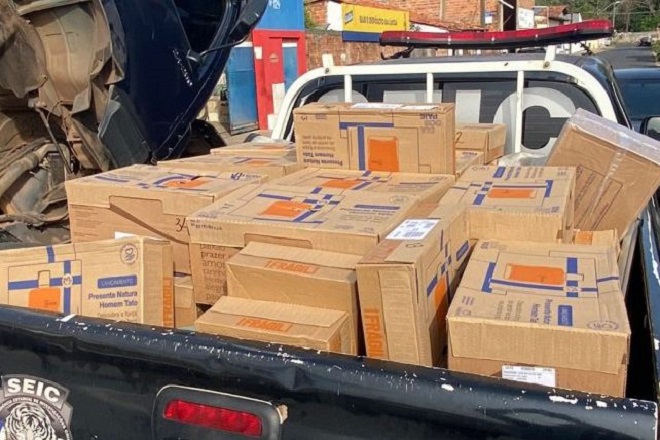 Segundo os policiais da Superintendência Estadual de Repressão ao Narcotráfico (SENARC), durante o flagrante, foram encontrados entorpecentes e vários produtos de uma empresa atuante no setor de produtos cosméticos, que haviam sido roubados na manhã do mesmo dia.