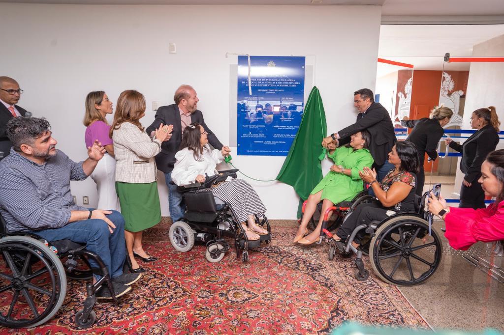 O projeto de reforma e adequação contemplou, ainda, a construção de rampa para possibilitar deslocamento acessível à recepção, rebaixamento de guias, instalação de corrimão adequado em rampas e escadas, sinalização de rota de fuga acessível e a criação de plataforma no auditório Fernando Falcão.