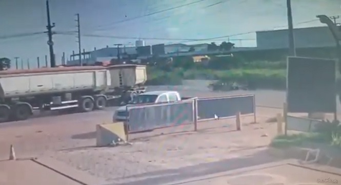 A câmera de segurança de um posto de combustível registrou o momento exato do acidente.