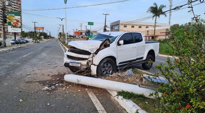 Um motorista de uma caminhonete perdeu o controle e bateu na madrugada desta segunda-feira (13) em um poste de iluminação pública situado na Avenida dos Holandeses, no bairro Calhau, em São Luís.