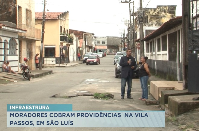 Na rua Castro Alves, localizada na Vila Passos, próximo ao Centro de São Luís, os moradores reclamam de problemas de infraestrutura, o que prejudica o trânsito e coloca em risco quem mora no local.
