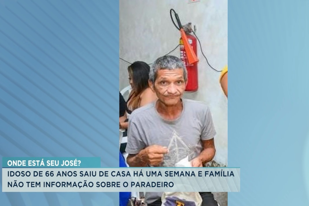 José Evangelista, 66 anos está desaparecido desde a última quarta-feira (9). A família informou que ele arrumou alguns pertences e saiu de casa sem dizer para onde iria. José tem problemas mentais e não levou seus remédios e nem dinheiro. Maria Áurea, irmã de José, teme pela saúde de seu irmão. Ela afirma que já procurou por ele em vários lugares e já divulgou a foto do idoso em vários meios de comunicação, mas até agora ainda não tem nenhuma pista sobre o paradeiro.