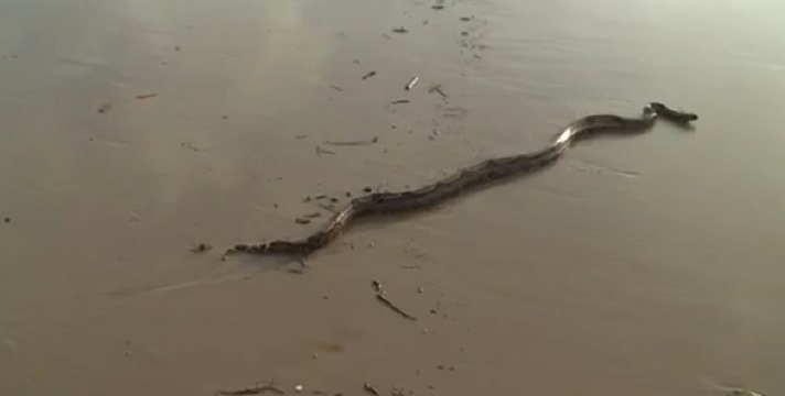 Uma cobra jiboia foi encontrada por banhistas na praia de São Marcos, em São Luís, na manhã desta terça-feira (17).