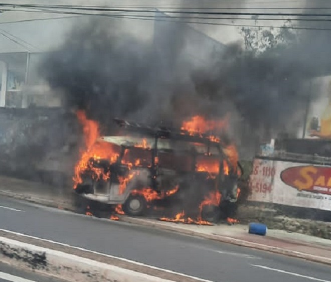 Uma Kombi pegou fogo em um posto de combustível na Avenida São Luís Rei de França, em São Luís, nesta segunda-feira (4).