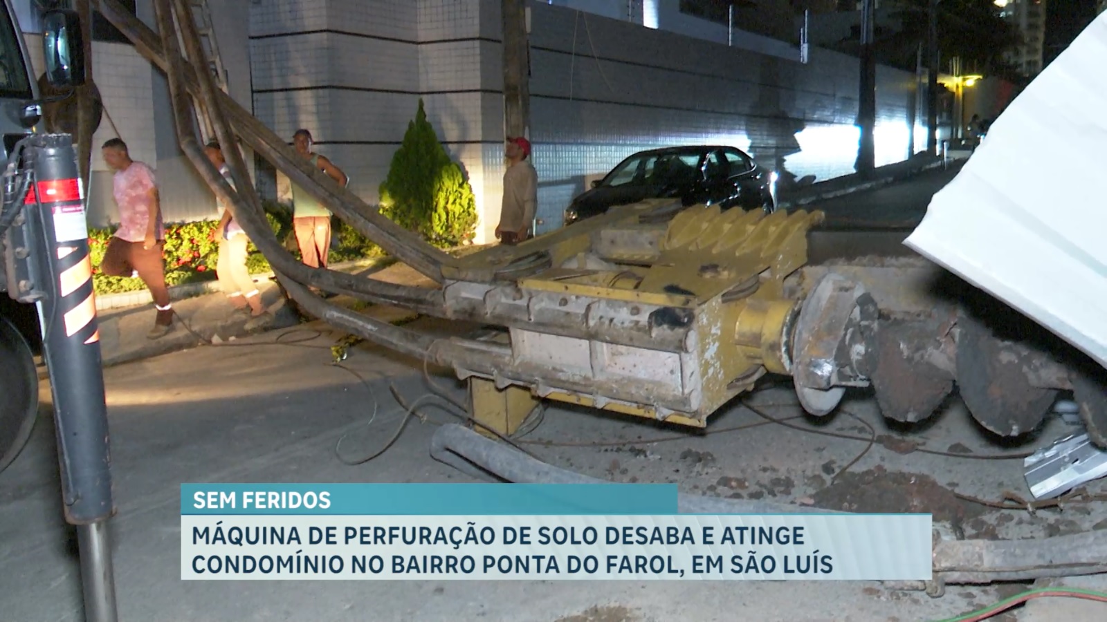 Uma máquina de perfuração de solo tombou e atingiu a guarita de um condomínio no bairro Ponta do Farol, em São Luís, nessa terça-feira (7). Por conta do tamanho da máquina, uma perfuratriz, a rua Aziz Heluy ficou interditada e parte da fiação elétrica foi danificada deixando muitos moradores da região sem energia. Ao tombar a máquina também tocou na arte externa da guarita de um condomínio. Apesar do susto, ninguém se feriu.