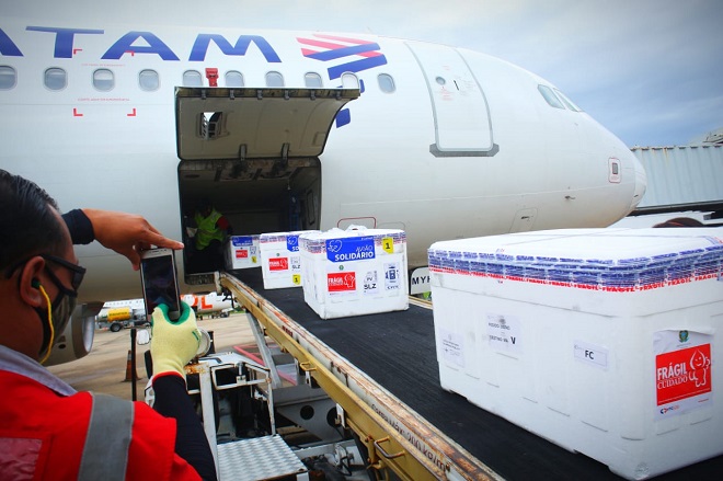 Chegaram nesta segunda-feira (24), as 300 mil doses de vacinas AstraZeneca prometidas pelo Ministério da Saúde.