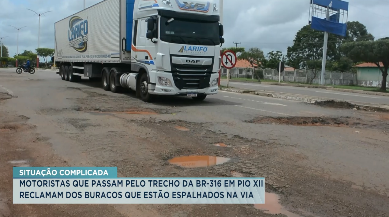 Quem precisa passar pela BR-316 no trecho que passa pelo município de Pio XII, reclama dos problemas da pavimentação. De acordo com os motoristas, por conta dos buracos que se formaram na via, muitos estão tendo prejuízos com a quebra dos veículos. Com isso há outro agravante, a demora na entrega das cargas que consequentemente aumenta também o preço do frete.