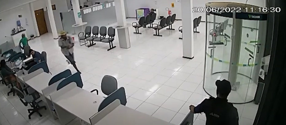 A ação criminosa durou cerca de dois minutos e mostra o vigilante da instituição financeira reagindo ao assalto e realizando disparos contra o criminoso, que não resistiu e momentos depois.