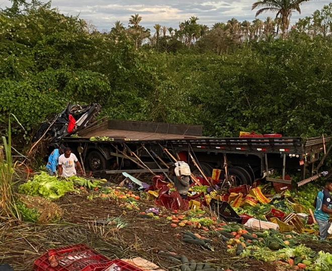 O veículo transportava verduras que iriam abastecer a região. A carga acabou ficando espalhada no local do acidente, populares que passavam próximo, acabaram saqueando parte dos alimentos.