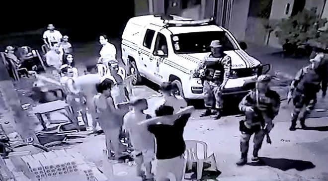 De acordo com imagens registradas, durante a abordagem, os policiais, que foram chamados após queixas de aglomeração e poluição sonora, agrediram fisicamente participantes da festa, culminando com um tiro disparado contra um jovem que pegou um celular para filmar a ocorrência.