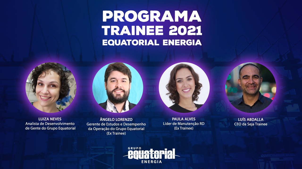 Nesta quarta-feira, dia 19, às 20h (horário de Brasília), o grupo Equatorial, em parceria com a Seja Trainee, realizará uma Live voltada exclusivamente para o programa Trainee, que está com as inscrições abertas até o dia 06 de junho em todo Brasil. A Live será transmitida pelo YouTube: https://www.youtube.com/user/sejatrainee e terá como objetivo tirar as dúvidas dos candidatos e mostrar como é fazer parte do time Equatorial. Na oportunidade profissionais da empresa, ex-trainees, falarão sobre o programa, sobre as experiências como colaborador do grupo, a jornada e toda a trilha de desenvolvimento do programa.