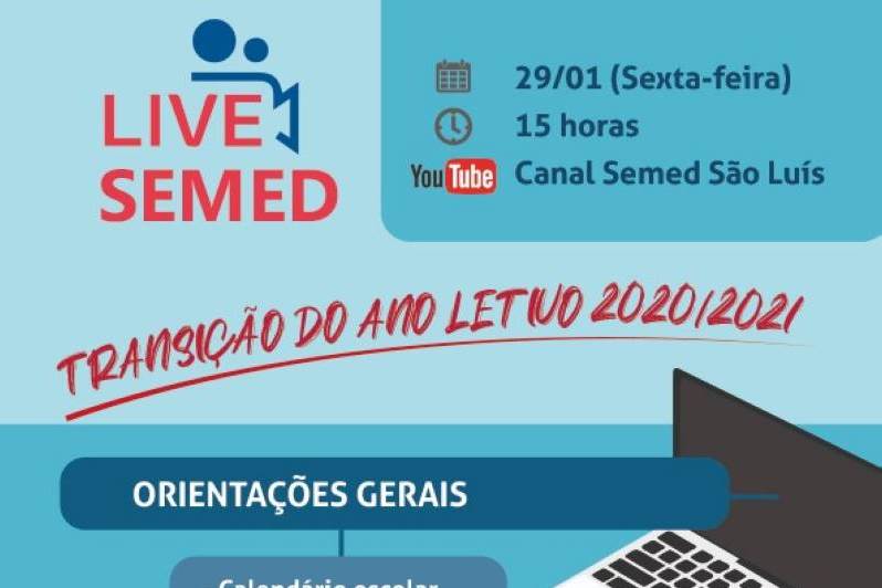 A Secretaria Municipal de Educação (Semed) realizará uma reunião on-line para orientar toda a comunidade escolar sobre a transição do ano letivo de 2020 para o ano letivo de 2021. A live será transmitida nesta sexta-feira (29), às 15h, no canal da Semed no Youtube.