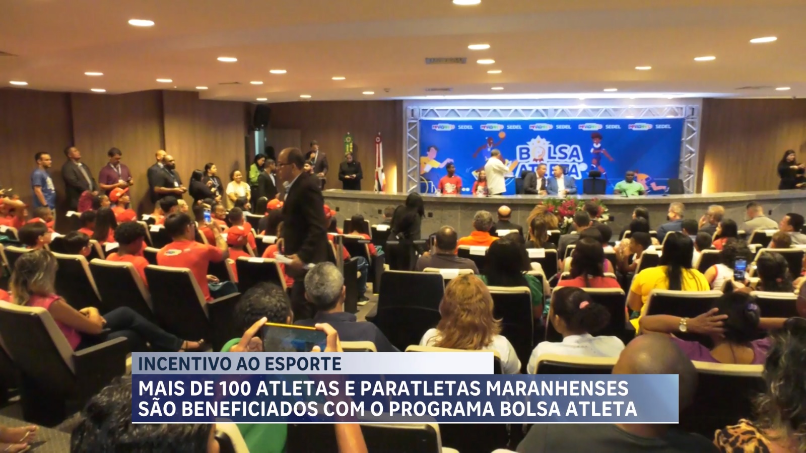 O Governo do Maranhão segue com investimentos que geram oportunidade para os jovens maranhenses. Nesta terça-feira (30), o governador Carlos Brandão acompanhado do vice-governador Felipe Camarão e do secretário de Estado do Esporte e Lazer, Naldir Lopes, entregou kits do Bolsa Atleta para 119 estudantes beneficiados pelo programa estadual em 16 municípios maranhenses. A cerimônia foi realizada no auditório do Palácio Henrique de La Rocque, no Calhau, e contou com a presença de alunos do ensino médio, fundamental e superior que desempenham atividades esportivas de alto rendimento e que agora estarão melhor equipados. Cada kit é composto por mochila, calça, camisa de passeio e boné.