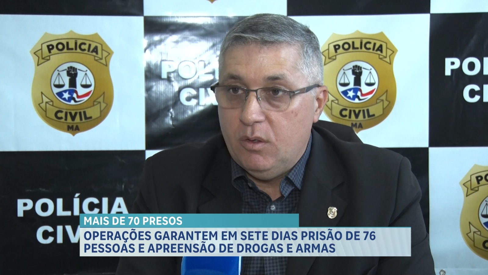 A Polícia Civil do Maranhão deflagrou diversas operações na última semana do mês de novembro, que resultaram em 76 prisões por crimes diversos na apreensão de drogas, armas de fogo, veículos e artefato explosivos, em todo o Estado do Maranhão.