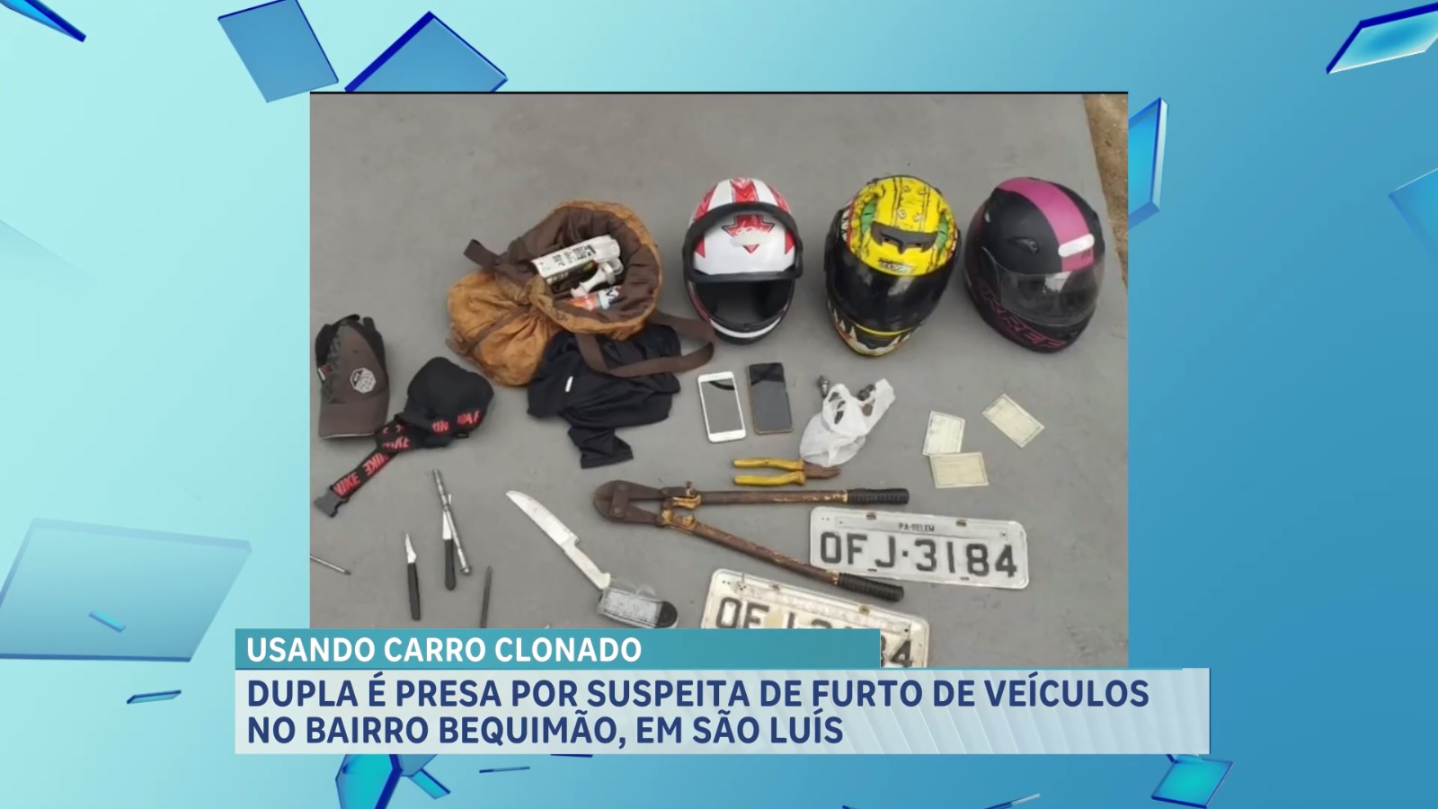 Dois homens foram conduzidos por policiais militares por suspeita de furtar veículos no bairro Bequimão, em São Luís. Segundo o comandante do 8º BPM, tenente-coronel Rayfran, a dupla já estava sendo monitorada e foram encontrados com um carro clonado e uma motocicleta furtada.