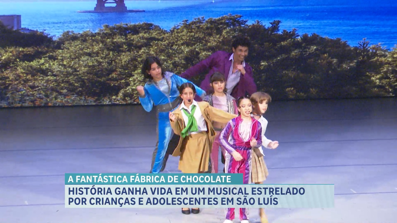 O clássico ''A Fantástica Fábrica de Chocolate'' encanta o público há quase 60 anos, já virou filme e agora ganha vida diferente em um musical estrelado por crianças e adolescentes que levaram o espetáculo ao teatro Arthur Azevedo, em São Luís, na última quarta-feira (22).