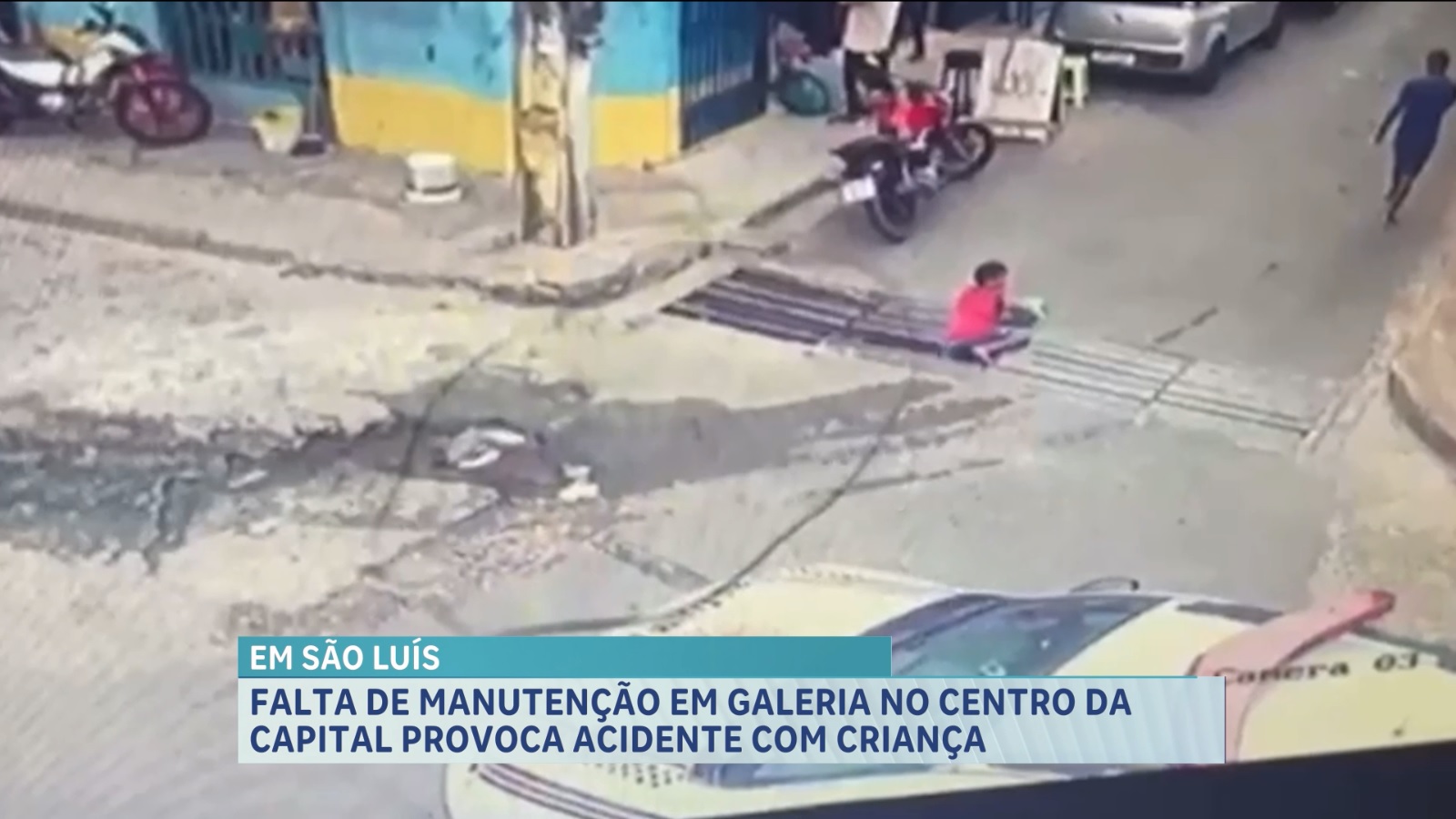 Viralizou nas redes sociais um vídeo gravado por câmeras de segurança que mostra o momento exato da queda de uma criança em uma galeria, que estava danificada. O caso aconteceu na Rua 7 de Setembro, centro se São Luís. Em nota, a Secretaria Municipal de Obras e Serviços Públicos (Semosp) informou que uma equipe já foi encaminhada para vistoriar o local e incluir no cronograma de ações de manutenção, com a reposição dos trilhos o mais breve possível. A Semosp informou também que mantém ações durante todo o ano de manutenção preventiva e corretiva nos dispositivos de drenagem.