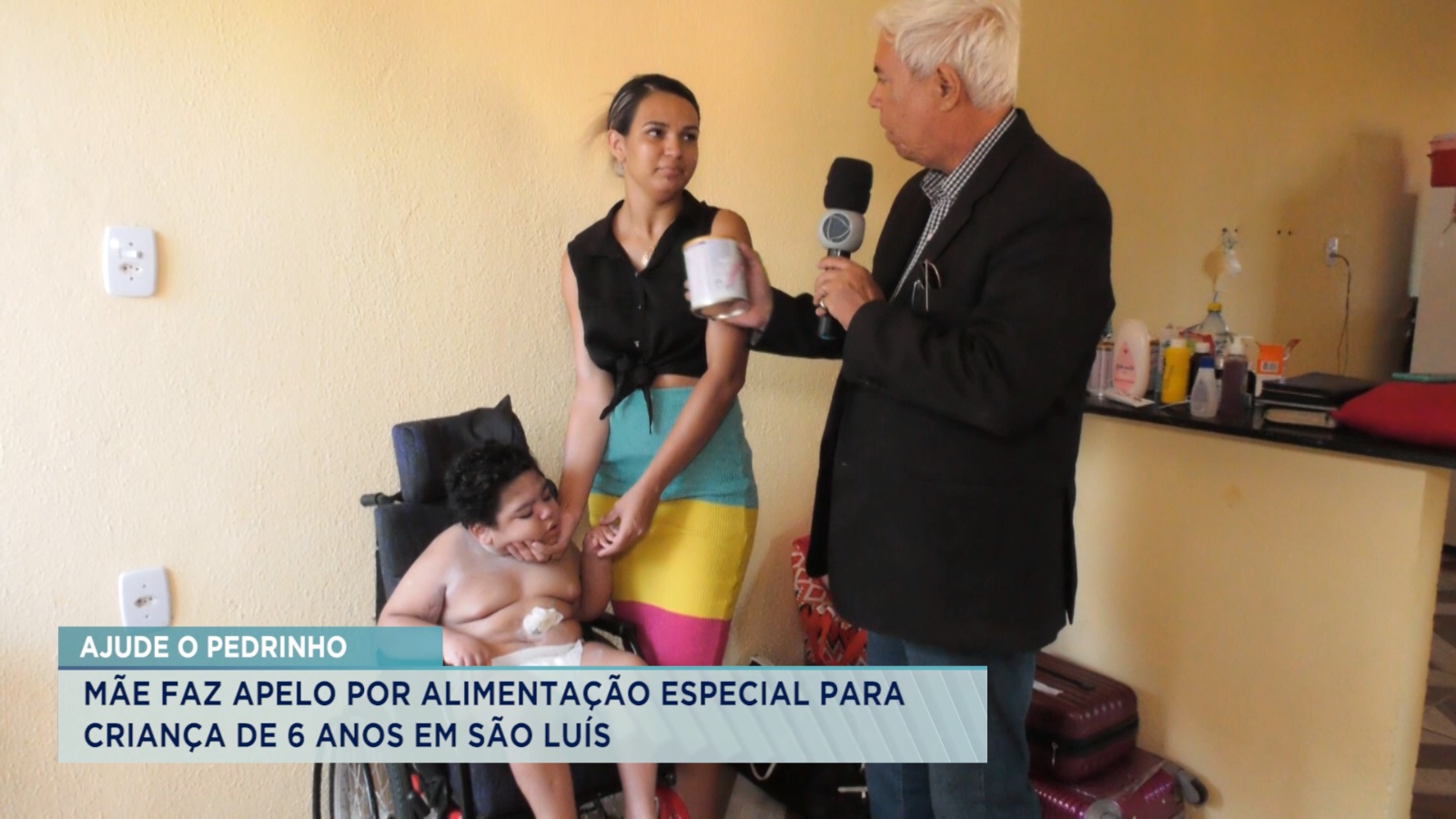 A família do Pedro Vinicius procurou a TV Cidade para fazer um apelo para conseguir alimentação especial a criança de apenas 6 anos. O Pedro foi diagnosticado com paralisia cerebral e microcefalia. Por conta da sua condição clínica de saúde ele se alimenta por meio de uma sonda. A mãe o trouxe de Codó para São Luís com o intuito de conseguir ajuda. Eles estão hospedados em uma casa de apoio. A criança se alimenta com um leite especial, com cada lata custando em média R$ 200.